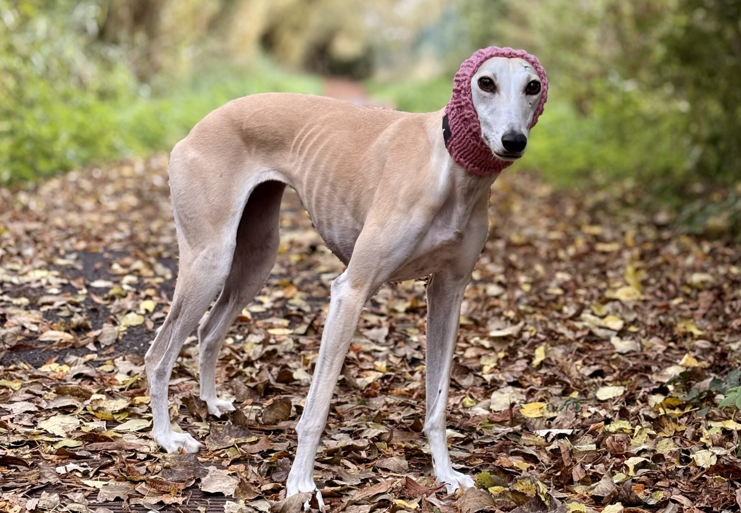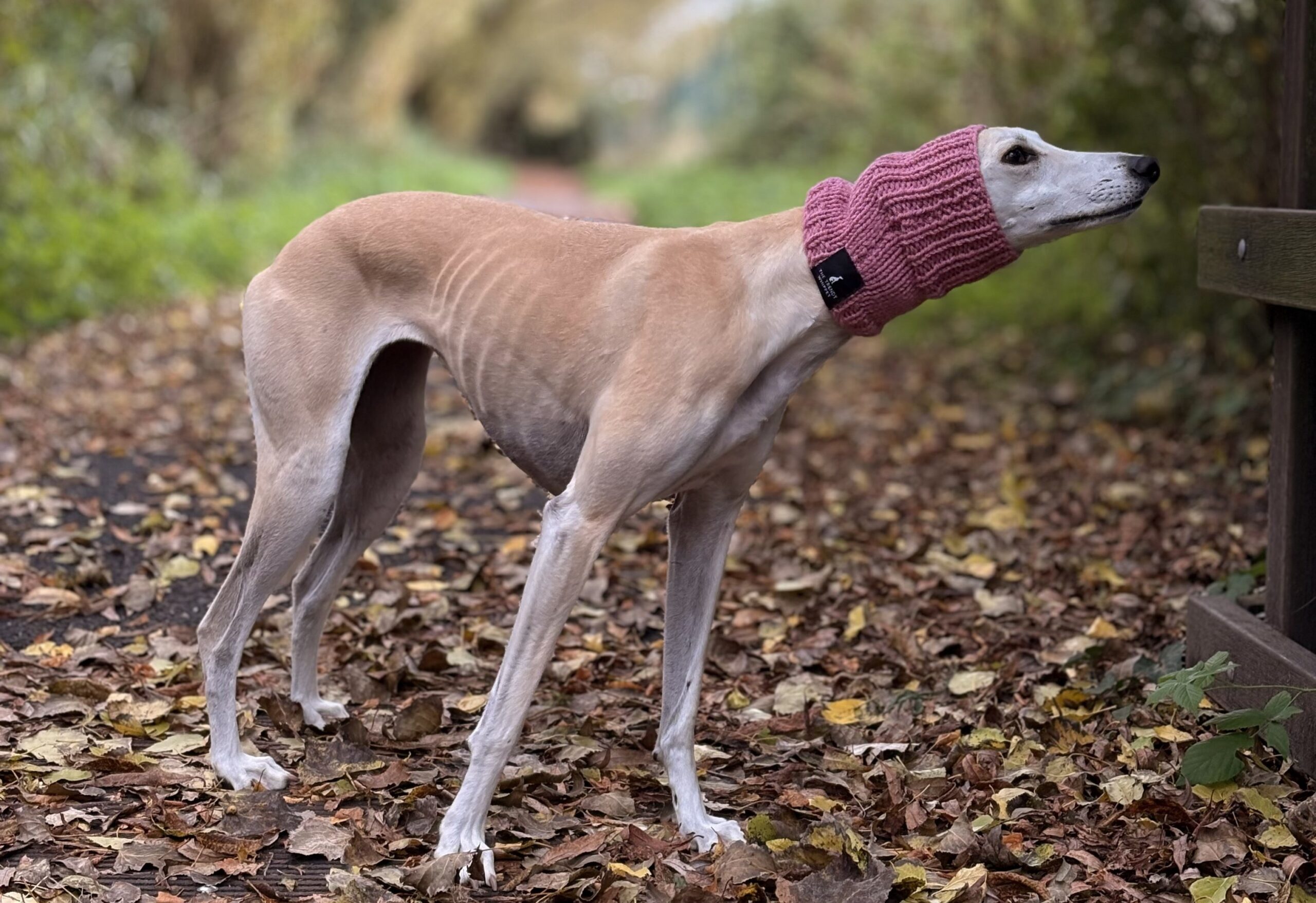 This is our second snood purchased from The Trendy Whippet, they look fabulous, keep their long necks warm and wash really well when covered in fox poo! Last winter Bella suffered with Pinnal vasculitis so I was pleased to find these snoods that cover her ears when it’s particularly wet and cold.
