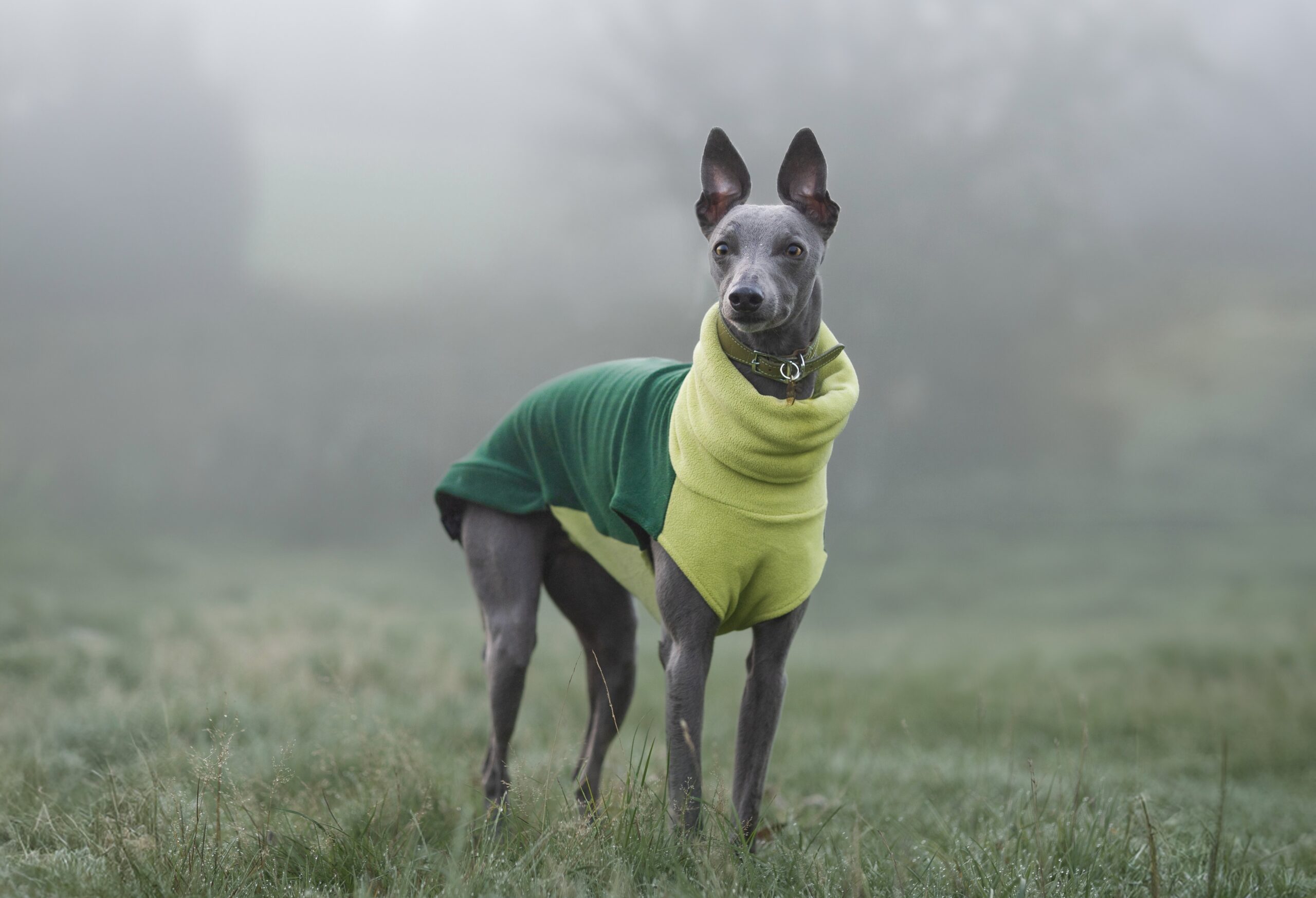 This lightweight fleece jumper is designed to keep your sighthound warm without restricting movement. Made for whippets, greyhounds, and lurchers, it features a two-tone colourway in deep green and vibrant lime for a bold, eye-catching look.