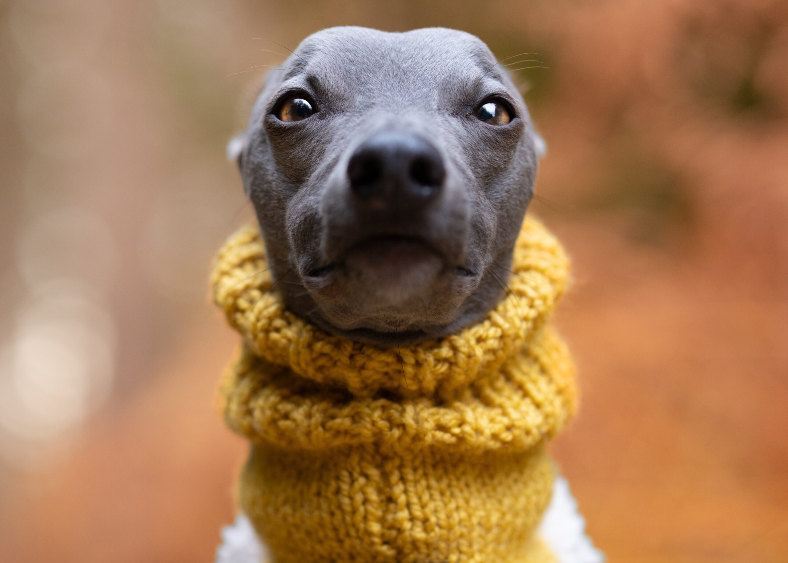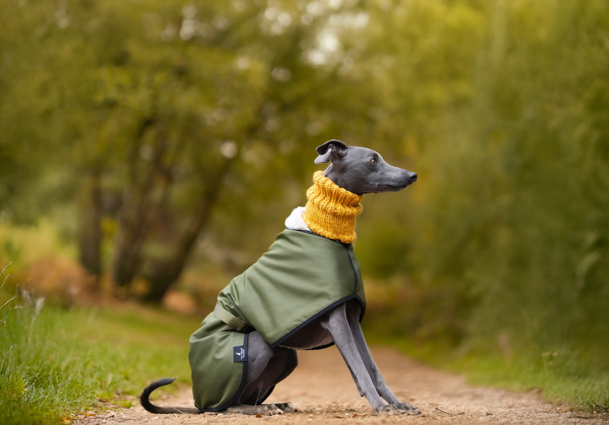 Almost can’t wait for the cooler weather for my Italian greyhound to wear this gorgeous snood – its a great addition to the autumn transitional wardrobe! The colour is beautiful and very nice quality.